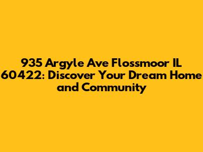 Hey guys! Are you ready to dive into everything you need to know about the amazing property located at 935 Argyle Ave, Flossmoor, IL 60422? Whether you're a potential buyer, a curious neighbor, or just someone who loves exploring real estate, this comprehensive guide has got you covered. We're not just talking about a house; we're talking about a home nestled in a vibrant community. Let's get started!
