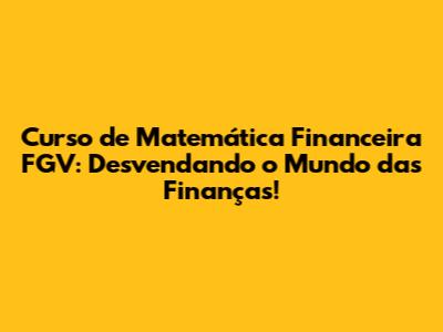 Curso de Matemática Financeira FGV – Opa, pessoal! Se você está buscando dominar o universo das finanças e dar um up na sua carreira, você veio ao lugar certo! Hoje, vamos mergulhar fundo no curso de matemática financeira da FGV, uma instituição renomada que oferece cursos incríveis para quem quer se destacar no mercado. Prepare-se para desvendar os segredos dos números e aprender a tomar decisões financeiras inteligentes. Vamos nessa!
