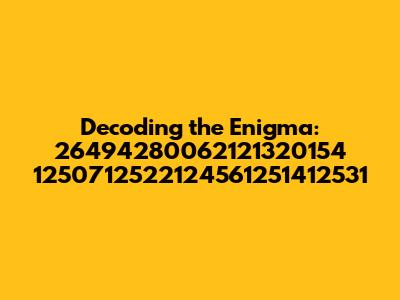 Hey guys! Ever stumbled upon a seemingly random string of numbers and wondered what in the world it could mean? Today, we're diving deep into the mystery of "26494280062121320154 1250712522124561251412531." At first glance, it looks like a jumble, but let's break it down and see if we can uncover any hidden meanings or potential uses. We'll explore various possibilities, from simple identification codes to complex encryption keys. So, buckle up and get ready for a numerical adventure! Maybe it's a product code, a serial number, or even a secret message – who knows? Let's put on our detective hats and find out! Remember, every number sequence tells a story, and it's our job to decipher it. Whether it leads us to a treasure or just a dead end, the journey of discovery is always worth it. Let’s start by considering the possible origins and structures of these numbers to see if we can crack the code.