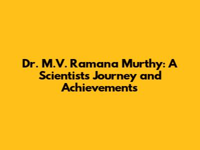 Dr. M.V. Ramana Murthy: A Scientist's Journey And Achievements