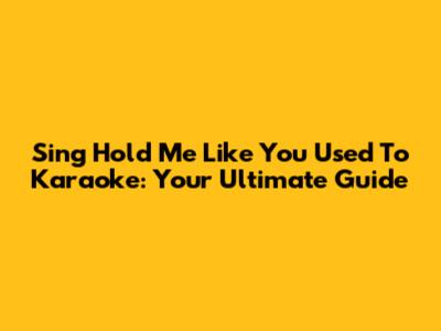 Sing 'Hold Me Like You Used To' Karaoke: Your Ultimate Guide